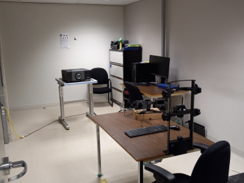 Ces trois locaux contiennent des ordinateurs permettant de faire des expériences comportementales dans lesquels les résultats recherchés sont liés, par exemple, aux temps de réaction ou aux taux d’erreur. Toutes les tâches du laboratoire sont programmées à partir du logiciel Matlab.